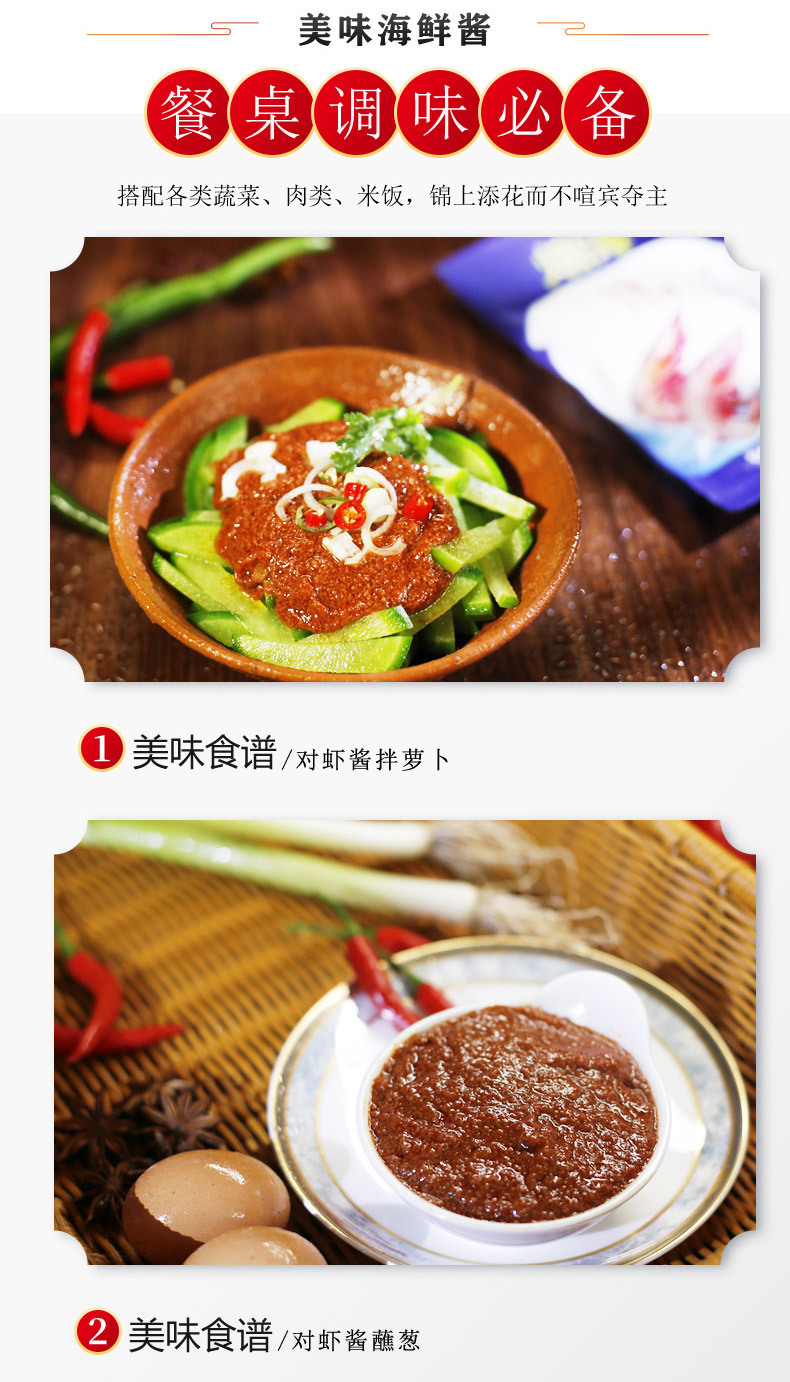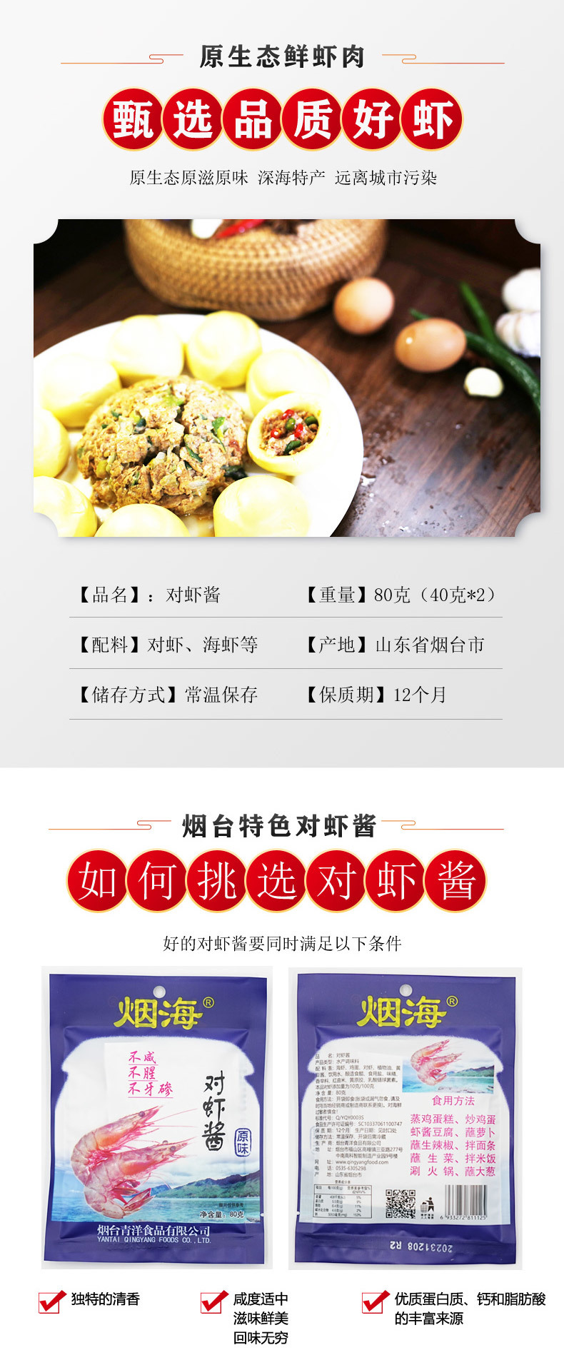 產(chǎn)品名稱:對蝦醬(原味)<br> 數(shù)量+價格:80g * 10袋 29.90元<br> 80g * 20袋 59元<br> 80g * 40袋 105元<br>